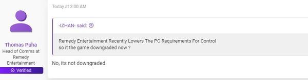 控制 Pc配置下调意味降质 Remedy 没有的事