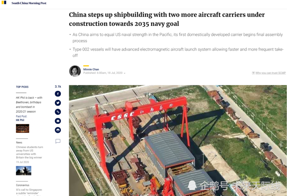两艘航母同时开建 003排水量超8万吨 未来电磁弹射不是梦 腾讯新闻